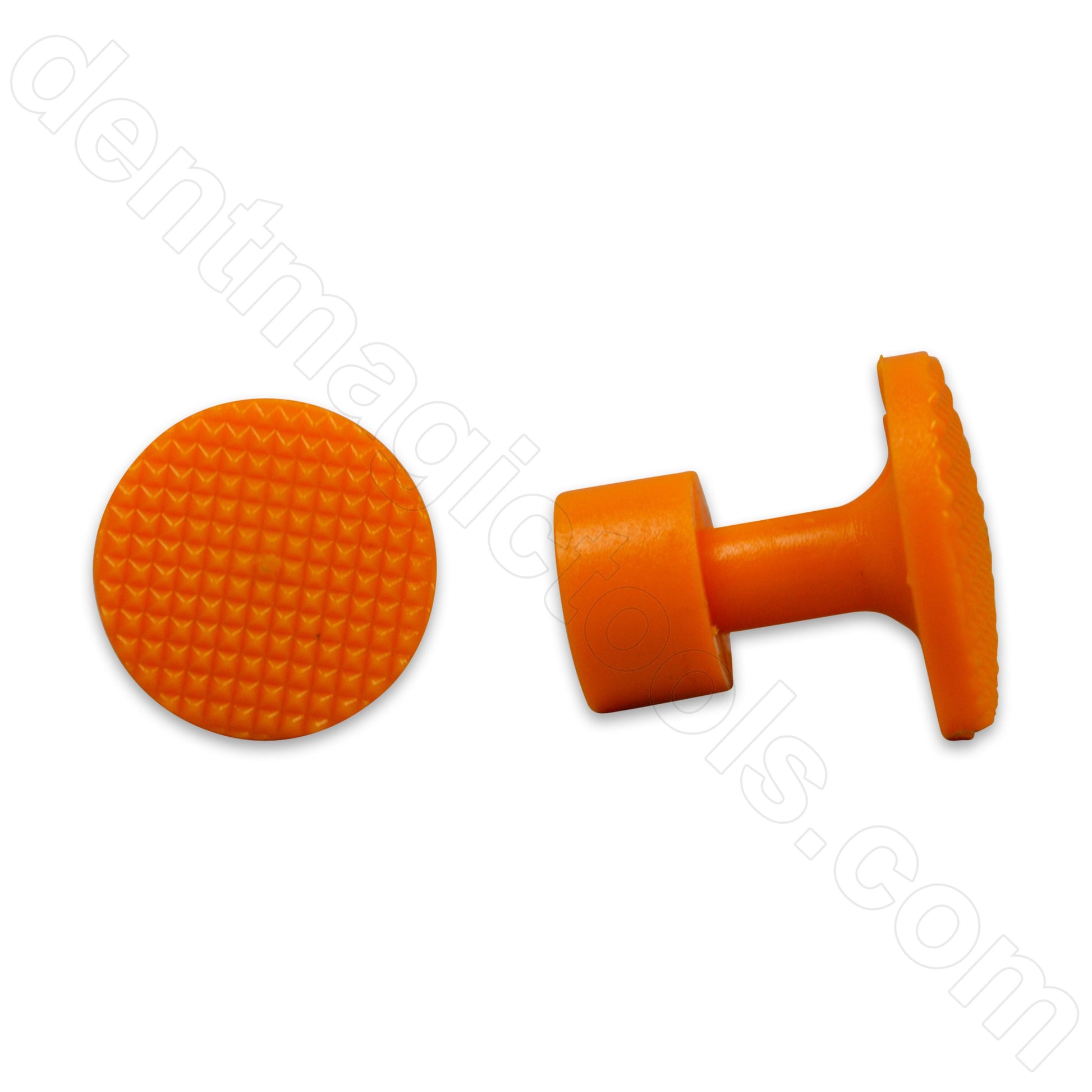 Our new orange tabs have a face modeled after a shrinking hammer to give more surface area for glue adhesion. They work with most slide hammers and lifters. The plastic used is highly heat resistant and glue easily peels off of them. The necks of these tabs are 6mm thick for increased strength. Usage tip: Set tab with glue on dent, do not press down on tab.