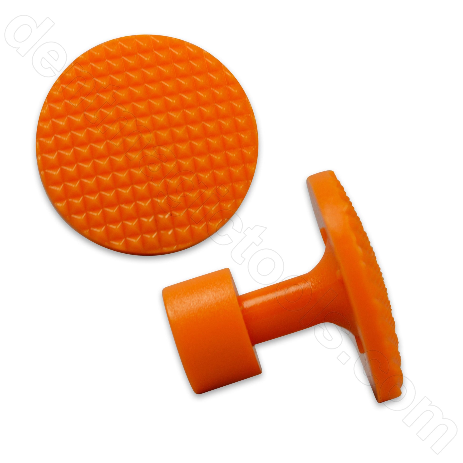 Our new orange tabs have a face modeled after a shrinking hammer to give more surface area for glue adhesion. They work with most slide hammers and lifters. The plastic used is highly heat resistant and glue easily peels off of them. The necks of these tabs are 6mm thick for increased strength. Usage tip: Set tab with glue on dent, do not press down on tab.