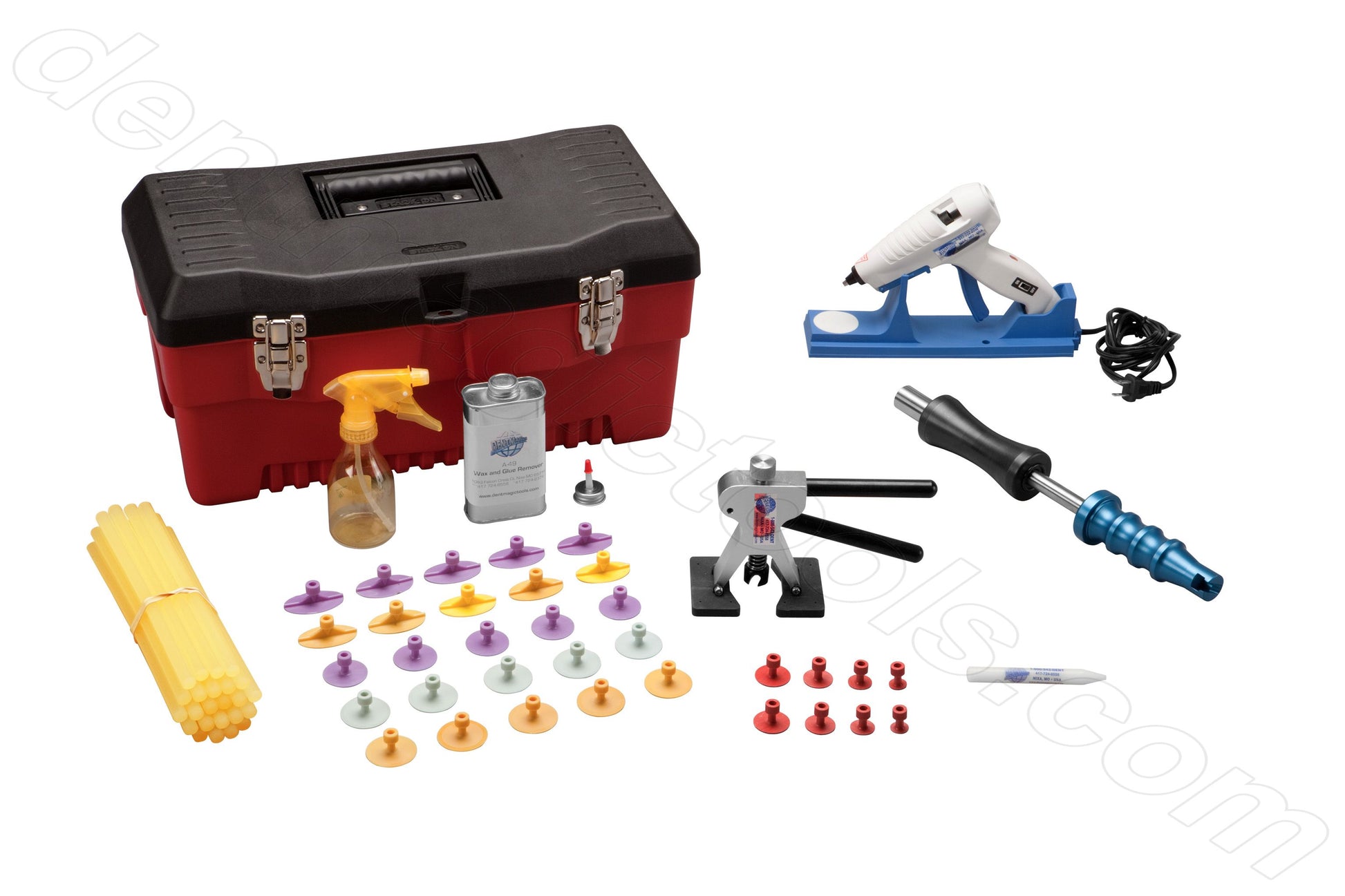 T-B Nylon Tap down (1 sharp) A-110 Spray bottle A-76 Mini Lifter 33-multi sized/color glue tabs Includes: Used for Hail repair and deep dents. 2-A-43-20 20mm round/red 2-A-43-32 32mm round/red 2-A-44-16 16mm round/red 2-A-44-25 25mm round/red Used for larger dents. 5-A-45 40mm round-thick/yellow 5-A-55 50x30mm oval-thick/yellow 5-A-56 40mm round-thin/blue 5-A-57 35mm round-thin/purple 5-A-58 50x30mm-thick/purple