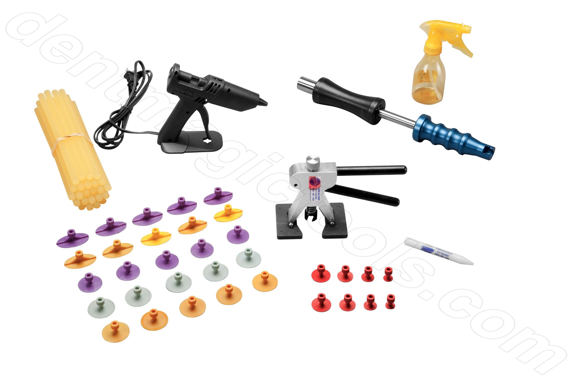 A-110 Spray bottle 33-multi sized/color glue tabs Includes: Used for Hail repair and deep dents. 2-A-43-20 20mm round/red 2-A-43-32 32mm round/red 2-A-44-16 16mm round/red 2-A-44-25 25mm round/red Used for larger dents. 5-A-45 40mm round-thick/yellow 5-A-55 50x30mm oval-thick/yellow 5-A-56 40mm round-thin/blue 5-A-57 35mm round-thin/purple 5-A-58 50x30mm-thick/purple